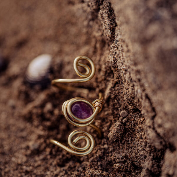 Amethyst Brass Swirl Ring