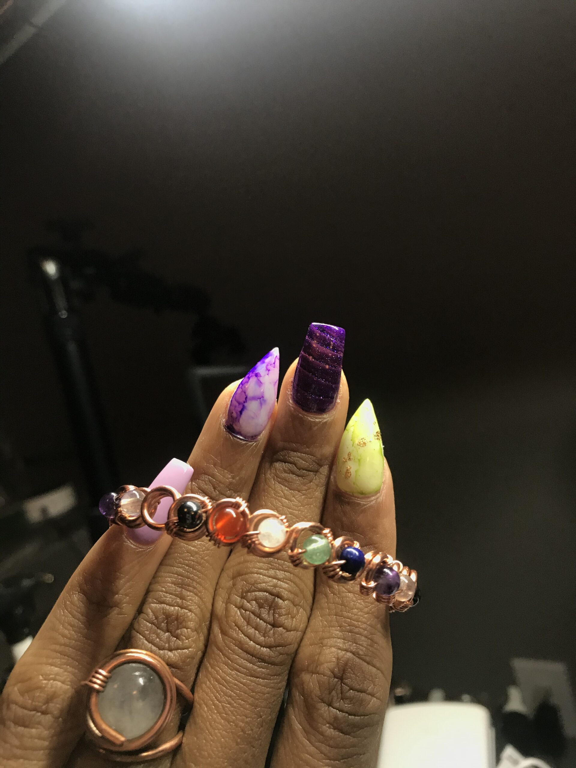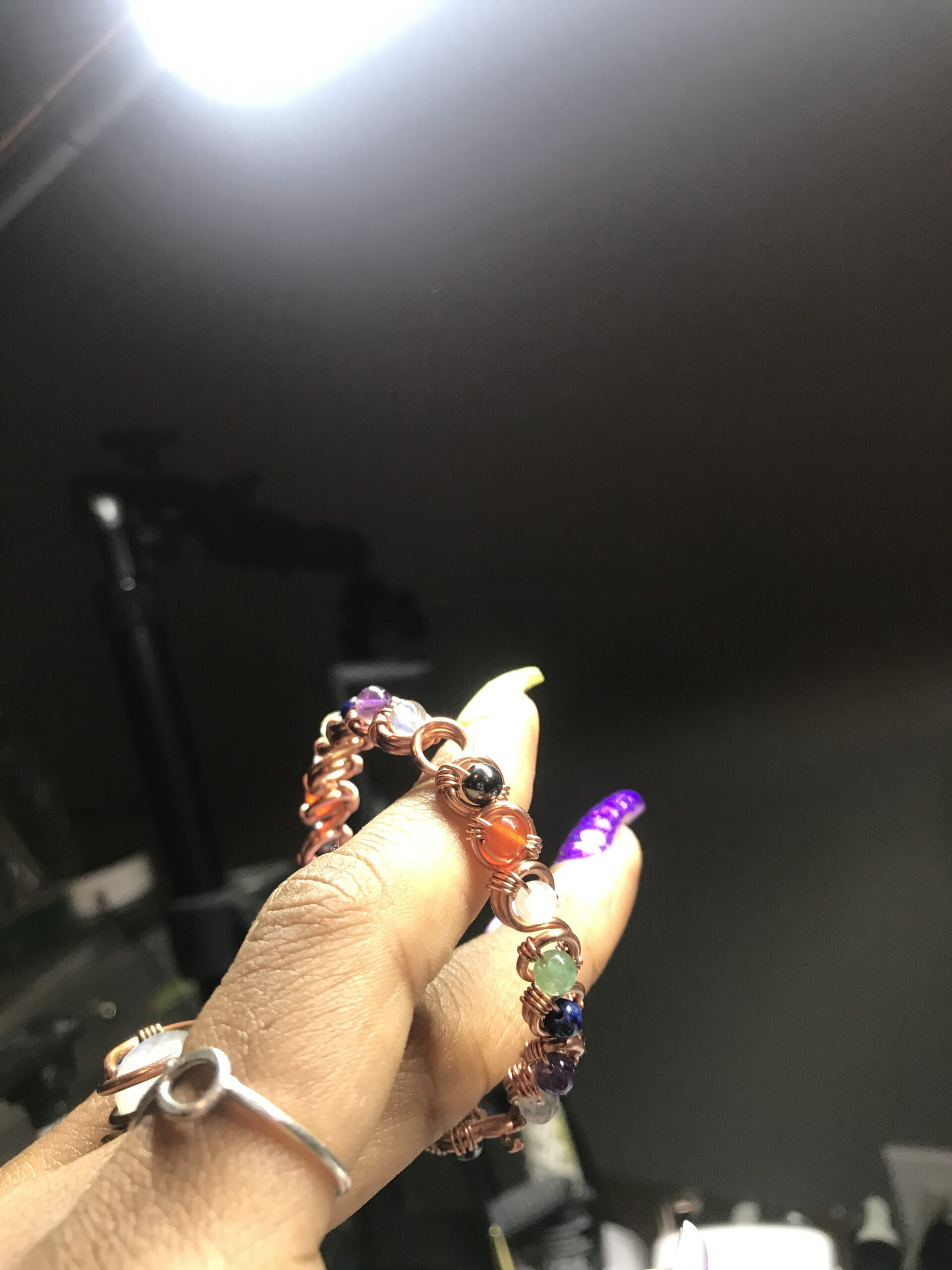 You have the choice between the original chakra wand ring, necklace, anklet, ear cuffs, puff ring for “throat chakra clearing*wink*” or you can email us for customs such as bracelets or body /belly chains.