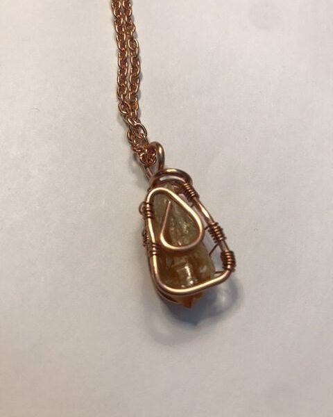 Cute citrine pendant for abundance, happiness, joy, manifestation grounding, connection to nature, emotional transformation and deflecting negativity. Copper and natural citrine Pendant. 18 inch chain with clasp.