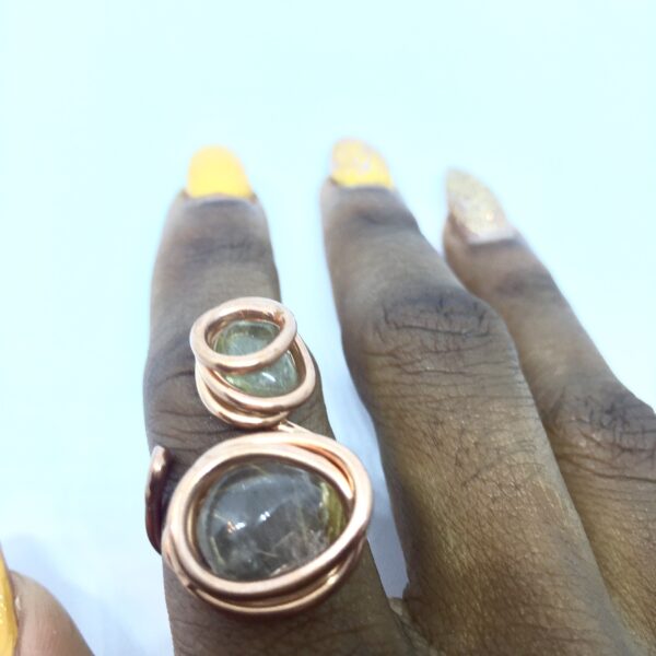Copper and rutilated quartz ring. Rutilated quartz is such a beautiful stone that amplifies energy, manifestation and intuition. ADJUSTABLE RING.