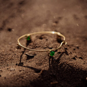 Jade dainty brass Bangle with gold accent beads.