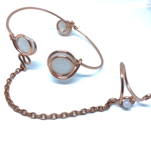 Handcrafted copper wire wrapped bracelet with adjustable pieces and moonstone for self love, compassion, emotional healing, balance , creativity and expressing your truth.