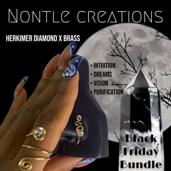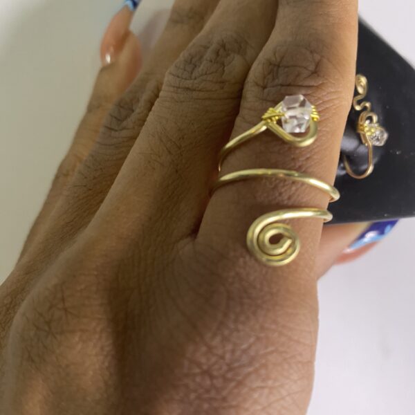 Beautiful Gift set for self love and/ or loving on someone else! Herkimer Diamond cuff pierceless nose cuff with an adjustable Herkimer Diamond ring both in a brass setting!