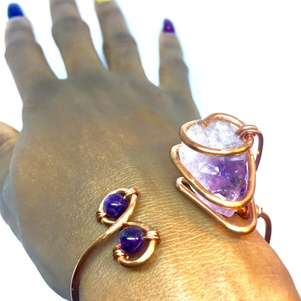 Made to order. No two stones wills be the same. Amethyst is the perfect stone for meditation, protection and peace. Adjustable copper bracelet.