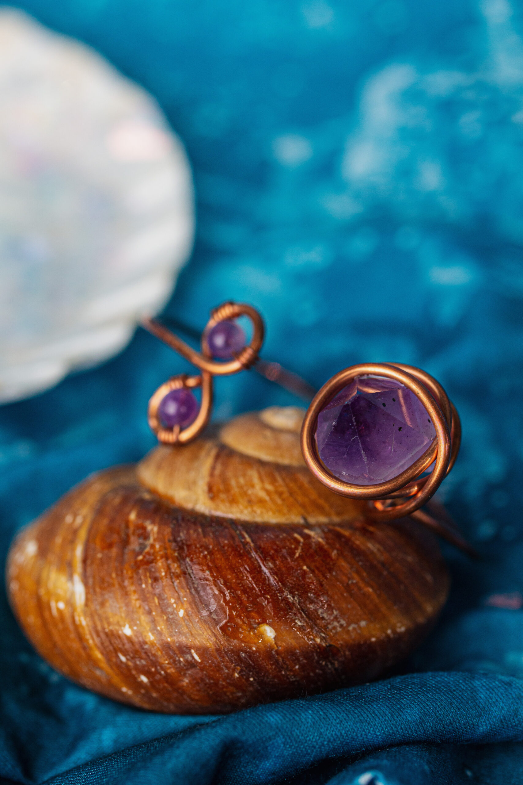 Adjustable infinity Trinity bracelet with amethyst and natural copper related to the crown or third eye chakra for enhanced meditation, intuition and connection to higher self.