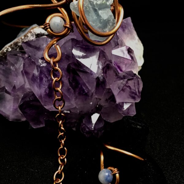 Infinity trinity goddess bracelet/ring with a Calming celestite stone for those enhancing their spiritual communication. Adjustable.