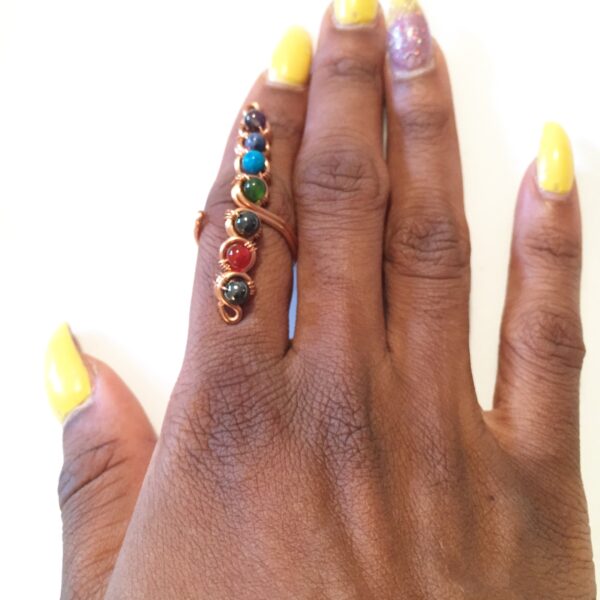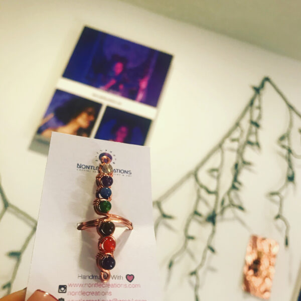Only one of its kind with a stone for each energy center including- amethyst, sodalite, turquoise, jade, tigers eye, carnelian and hematite.