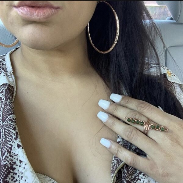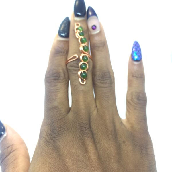 Jade stone for purification, heart chakra balancing, good luck, and soothing energy. Copper.