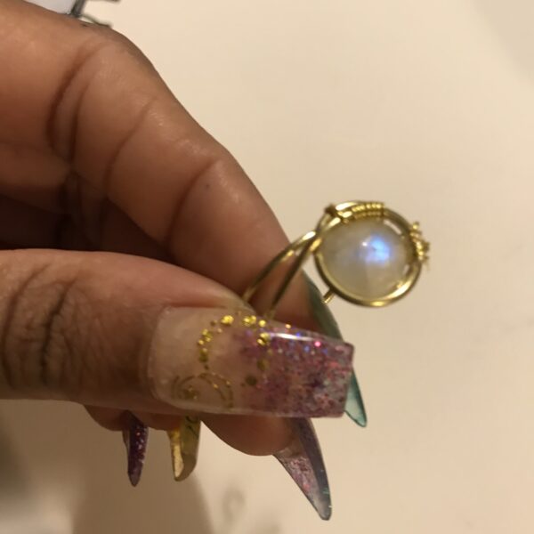Brass wrapped moonstone ring for creativity, intuition, dreams and balance. Ring is adjustable but you can leave the size in the notes for pre adjustment.
