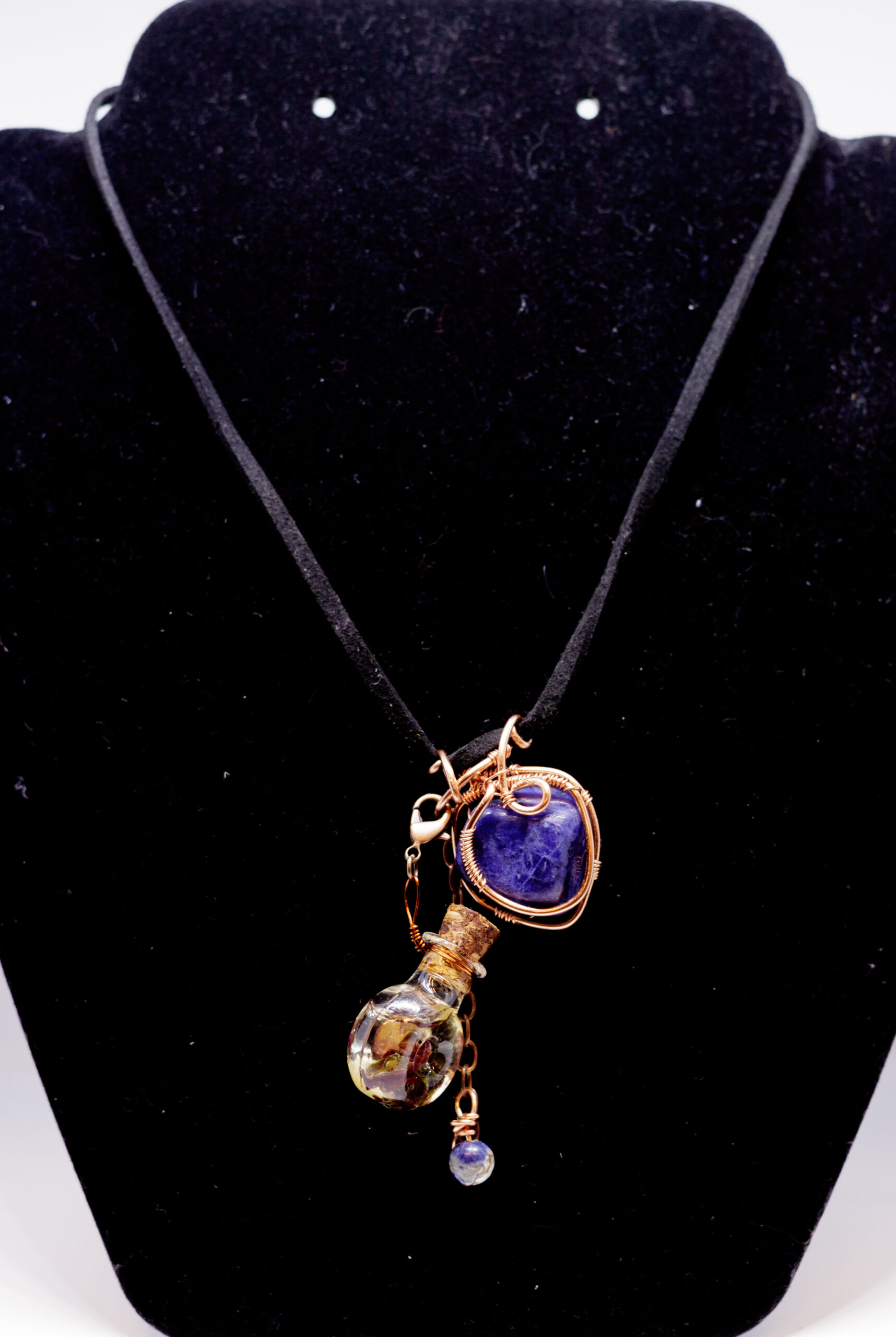 Sodalite choker with a handcrafted topical oil to assist with intuition and focus.