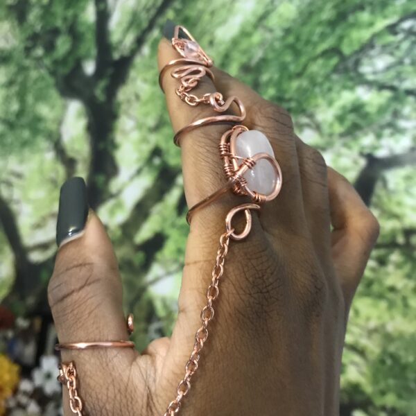 Beautiful statement piece featuring big and bold rose quartz stones. An ultimate stone of love, compassion, balance, peace and self love. Made with all natural copper and stones. Ring is adjustable and packaged in a Nontle gift box with love!
