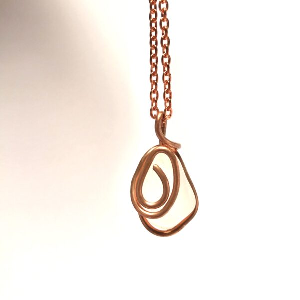 Rose quartz chain centered at the heart chakra for balance, love, compassion and truth. Copper chain and natural rose quartz stone. Please keep in mind that no two pieces will be alike as no two stones or wrap styles are alike but very similar! 20 inch chain💕