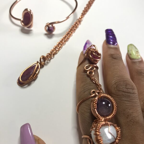[contact-form-7 404 "Not Found"]Beautiful statement piece featuring ruby, moonstone and amethyst. Assist with passion, emotional health, enlightenment and ready to be programmed to your highest intentions be it manifestation, wisdom or even connection to source or higher power. Made with all natural copper and stones. Ring is adjustable and packaged in a Nontle gift box with love!